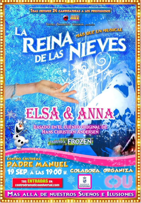 Das Rathaus von Estepona teilt mit, dass das Centro Dramático Universal am kommenden Freitag, den 19. September, um 19.00 Uhr mit Hans Christian Andersens „Die Schneekönigin“ ins Centro Cultural Padre Manuel zurückkehrt, einer Musiktheaterproduktion für die ganze Familie, Tribute to Frozen, die eine Hommage an einen der bekanntesten Filme unserer Generation darstellt.