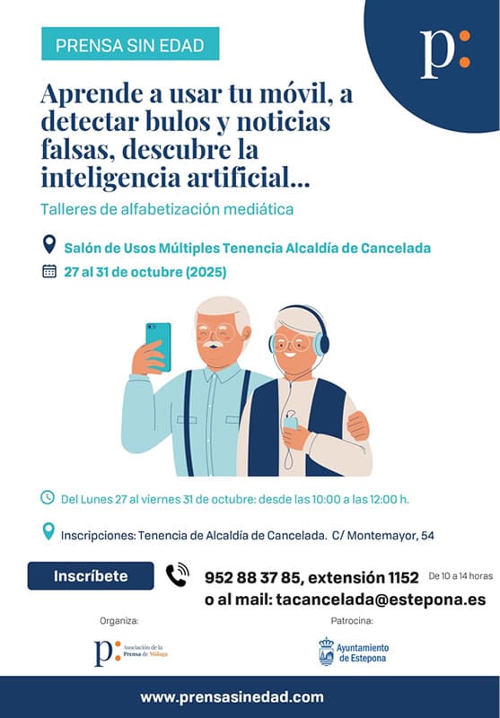 Das Rathaus von Estepona bietet in Zusammenarbeit mit dem Presseverband von Málaga (APM) der älteren Bevölkerung der Gemeinde die Möglichkeit, an der Entwicklung einer neuen Ausgabe des Medienkompetenzprojekts für Senioren „Presse ohne Alter“ teilzunehmen.