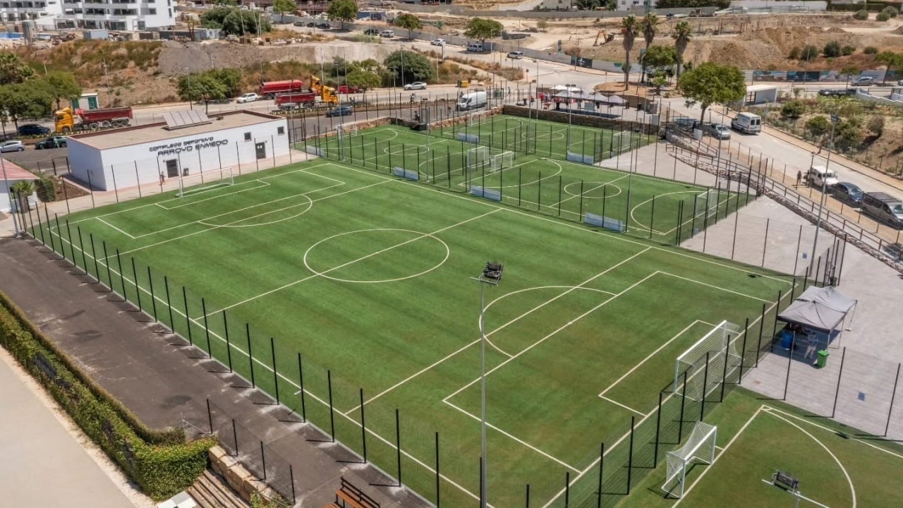 Im Juli letzten Jahres hat Estepona sein Netz an Sportanlagen um diesen Komplex erweitert, der über eine städtische Konzession verwaltet wird und über insgesamt 7 Fußballplätze unterschiedlicher Größe verfügt. Zu dem bestehenden 11-Fußballfeld mit Naturrasen kamen im Sommer ein 7-Fußballfeld, ebenfalls mit Naturrasen, sowie vier 5-Fußballfelder und ein weiteres 7-Fußballfeld, alle mit Kunstrasen. Das von der Konzessionsgesellschaft für den Bau und die Verwaltung dieser Plätze, Football Impact S.L., durchgeführte Projekt umfasste auch die Umzäunung, die Beleuchtung und die Installation von Tribünen.