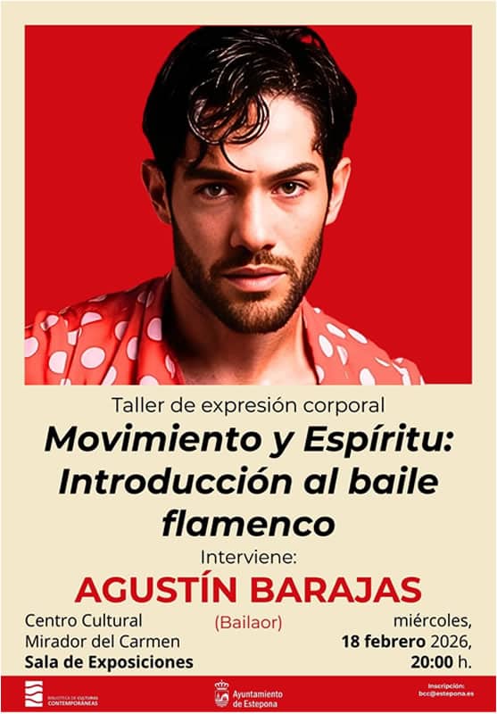 Das Rathaus von Estepona teilt mit, dass der bekannte Tänzer und Choreograph Agustín Barajas einen kostenlosen Workshop zum Thema Körperausdruck „Bewegung ist Geist: Einführung in den Flamenco-Tanz“ geben wird. Diese Veranstaltung ist Teil des Kulturprogramms für das erste Quartal der Bibliothek der zeitgenössischen Kulturen und findet am 18. Februar um 20:00 Uhr statt.