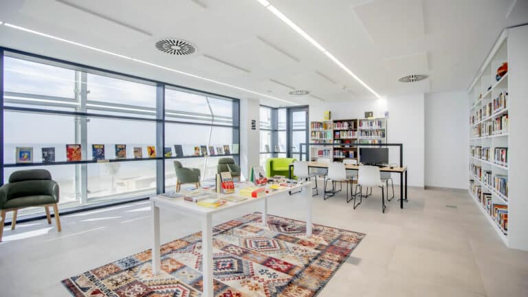 Die Bibliothek ist so konzipiert, dass die Benutzer bei ihrem täglichen Besuch eine einzigartige Erfahrung machen können, dass sie zu einer Erweiterung ihres Zuhauses wird, dass sie den kulturellen und technologischen Raum leben können. Das Engagement der Stadt für diesen Raum ging Hand in Hand mit einem umfassenden Programm an Aktivitäten, die diese Einrichtung das ganze Jahr über lebendig halten.