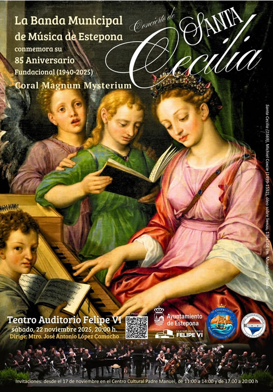 Das Konzert zu Ehren von Santa Cecilia steht unter der Leitung des Titulardirektors und künstlerischen Leiters der Stadtkapelle, José Antonio López Camacho, und ist in zwei Teile gegliedert: einen ersten Teil mit symphonischer Musik, in dem die Band das Konzert Pasodoble „Música i Poble“ des valencianischen Komponisten Ferrer Ferran aufführen wird, sowie die historische Wiederherstellung des Originalmanuskripts des posthumen Werks „Axarquía“ des Maestros Perfecto Artola Prats, das von dem Esteponero-Musiker José Antonio Cervantes überarbeitet wurde, und einen zweiten Teil, in dem die Band von den Stimmen des Chors Magnum Mysterium in einer lyrischen Gala begleitet wird, die eine Auswahl von Chören aus Zarzuelas und Opern enthält, wie die „Seguidillas“ aus der Zarzuela „La Verbena de la Paloma“, als Hommage an den 175. Geburtstag von Tomás Bretón.