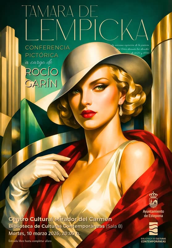 Das Rathaus von Estepona teilt mit, dass am kommenden Dienstag, den 10. März, um 20:00 Uhr in der Bibliothek für zeitgenössische Kulturen des Mirador del Carmen der Vortrag „Tamara de Lempicka“ von Rocío Garín, der Leiterin des Workshops für Zeichnen und Malen der städtischen Kulturdelegation, stattfinden wird.