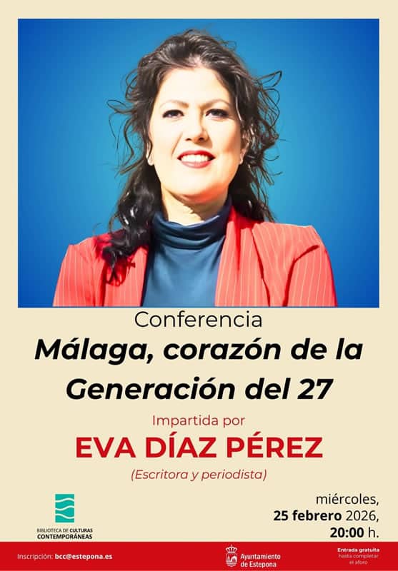 Das Rathaus von Estepona teilt mit, dass die Bibliothek für zeitgenössische Kulturen am 25. Februar um 20:00 Uhr die Konferenz „Málaga: das Herz der Generation der 27“ mit der Schriftstellerin und Journalistin Eva Díaz Pérez veranstaltet.