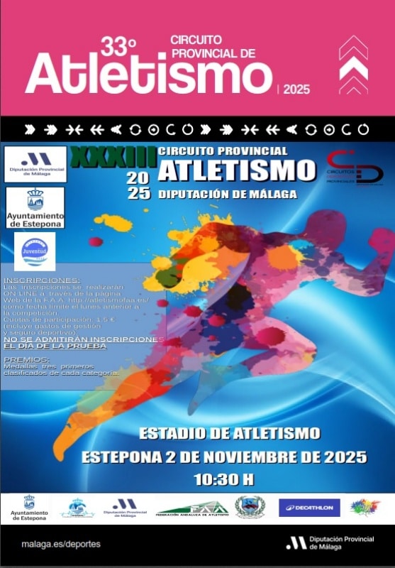 Die Stadtverwaltung von Estepona teilt mit, dass am 2. November ab 10.30 Uhr im städtischen Leichtathletik-Stadion die 33. Auflage des Leichtathletik-Wettkampfs der Provinz Málaga 2025 stattfindet, an dem Athleten aus der ganzen Provinz teilnehmen.