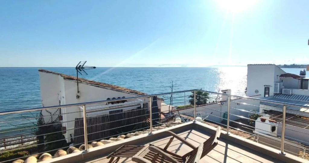 Beautiful renovated house in second line beach just 15 meters from the beach, with spectacular views over the Mediterranean Sea and Estepona Mountains.The house has 77m2 useful and 60m2 terraces.
