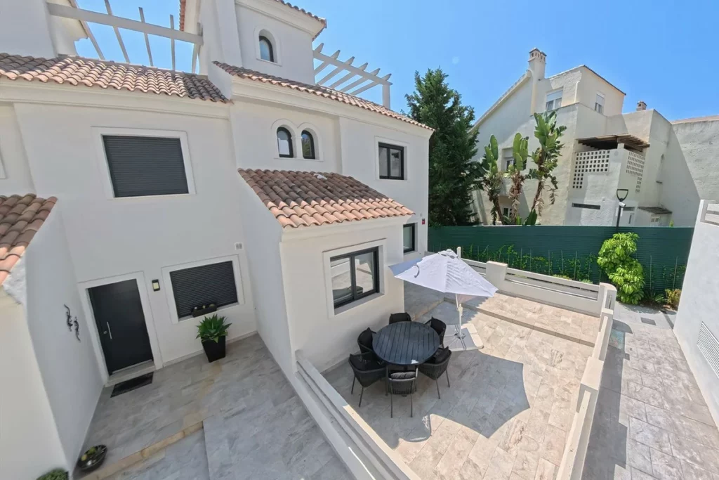 Located within the exclusive El Campanario area of Estepona, this elegant corner townhouse is part of a peaceful development of just 47 homes. Designed with traditional Andalusian architecture, the property enjoys spacious terraces and an abundance of natural light throughout.