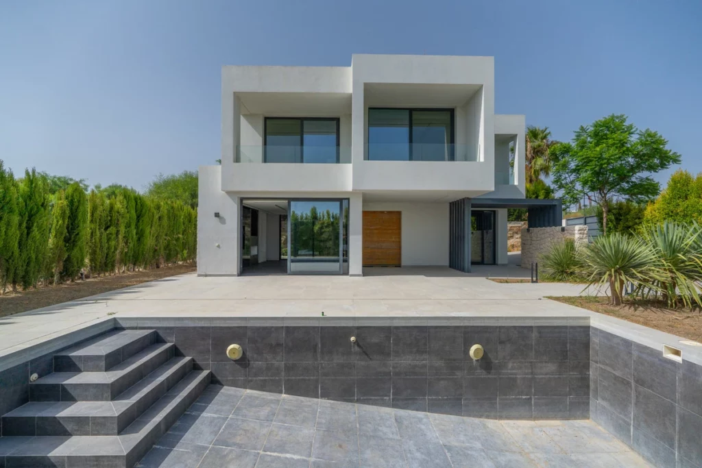 The villa comes with a private pool, garden, and garage, and is situated in a quiet residential area close to the beach, golf courses, restaurants, and all amenities. The south-facing orientation ensures all-day sun and a warm, inviting atmosphere.