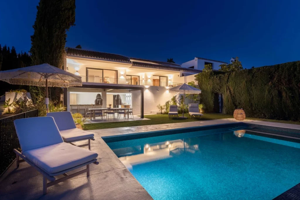 A fully renovated designer villa in the prestigious Paraiso Alto area of Benahavís. This exceptional home captures uninterrupted panoramic views of the Mediterranean Sea and Gibraltar from almost every room, including the main living areas, kitchen, terraces, and landscaped garden.