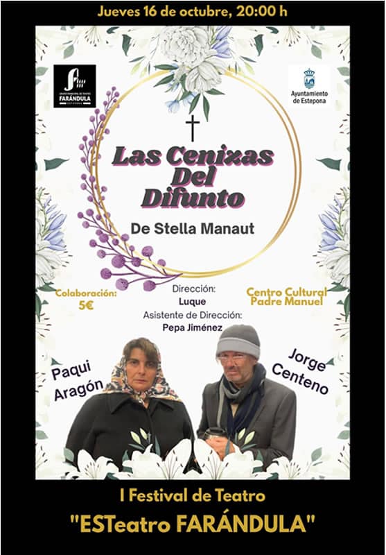 Das Rathaus von Estepona teilt mit, dass die städtische Theatergruppe „Farándula“ unter der Leitung von Luque die erste Ausgabe des Theaterfestivals „ESteatro Farándula“ präsentiert, das vom 10. bis 24. Oktober (10., 16., 17., 23. und 24. Oktober) um 20:00 Uhr in der Aula des Centro Cultual Padre Manuel stattfindet.