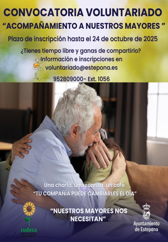 anzumelden. Mit dieser Initiative bekräftigen das Rathaus von Estepona und Cudeca ihr Engagement für eine gerechtere, einfühlsamere und fürsorglichere Gesellschaft, in der niemand im Alter allein dastehen muss. Es ist auch ein Aufruf an die Öffentlichkeit, sich als Freiwillige zu beteiligen und ein aktiver Teil des Wandels zu sein.