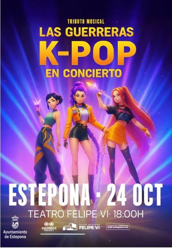 Das Rathaus von Estepona teilt mit, dass am kommenden Freitag, den 24. Oktober, um 18:00 Uhr, „Las Guerreras K-Pop“ im Auditorium des Theaters Felipe VI auftreten wird:Um 18:00 Uhr findet im Auditorium des Theaters Felipe VI das Konzert von Las Guerreras K-Pop“ statt, eine musikalische Show, die von dem erfolgreichen Animationsfilm auf Netflix inspiriert ist und die Geschichte einer koreanischen Pop-Supergruppe erzählt, die ihre Fans mit ihren geheimen Kräften vor übernatürlichen Bedrohungen schützt.