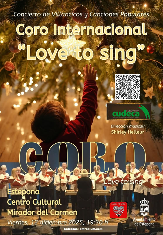 Das Rathaus von Estepona teilt mit, dass am kommenden Freitag, den 12. Dezember, um 19:30 Uhr im Kulturzentrum Mirador del Carmen ein Weihnachtskonzert des internationalen Chors ‚Love to Sing‘ zu Gunsten der Stiftung CUDECA für Palliativmedizin stattfindet.